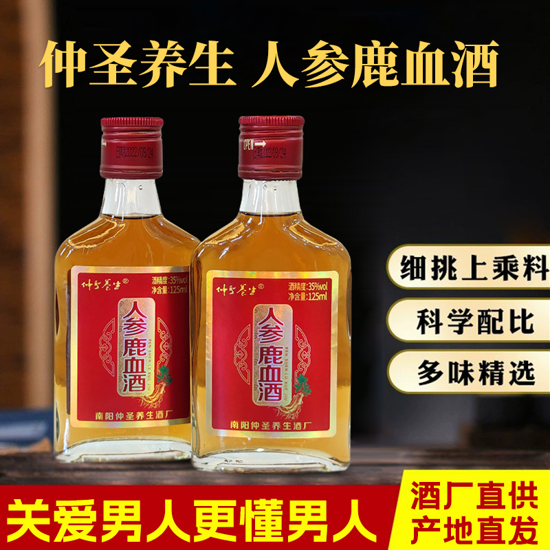 产品名称:仲圣人参鹿血酒 规格:1*125ML*24 酒精度:35%VOL 产品特点:仲圣养生酒,系尊汉代“医圣”张仲景之养生理念,由中国南阳张仲景国医学院专家,据“药食同源”之原理,采用红粮和原生态三潭矿泉水为原料所酿基酒,辅以八百里伏牛山所产中药材。经自然浸泡,科学调配而制成。该酒酒香浓郁,药香适中,口感绵柔,男女皆宜。